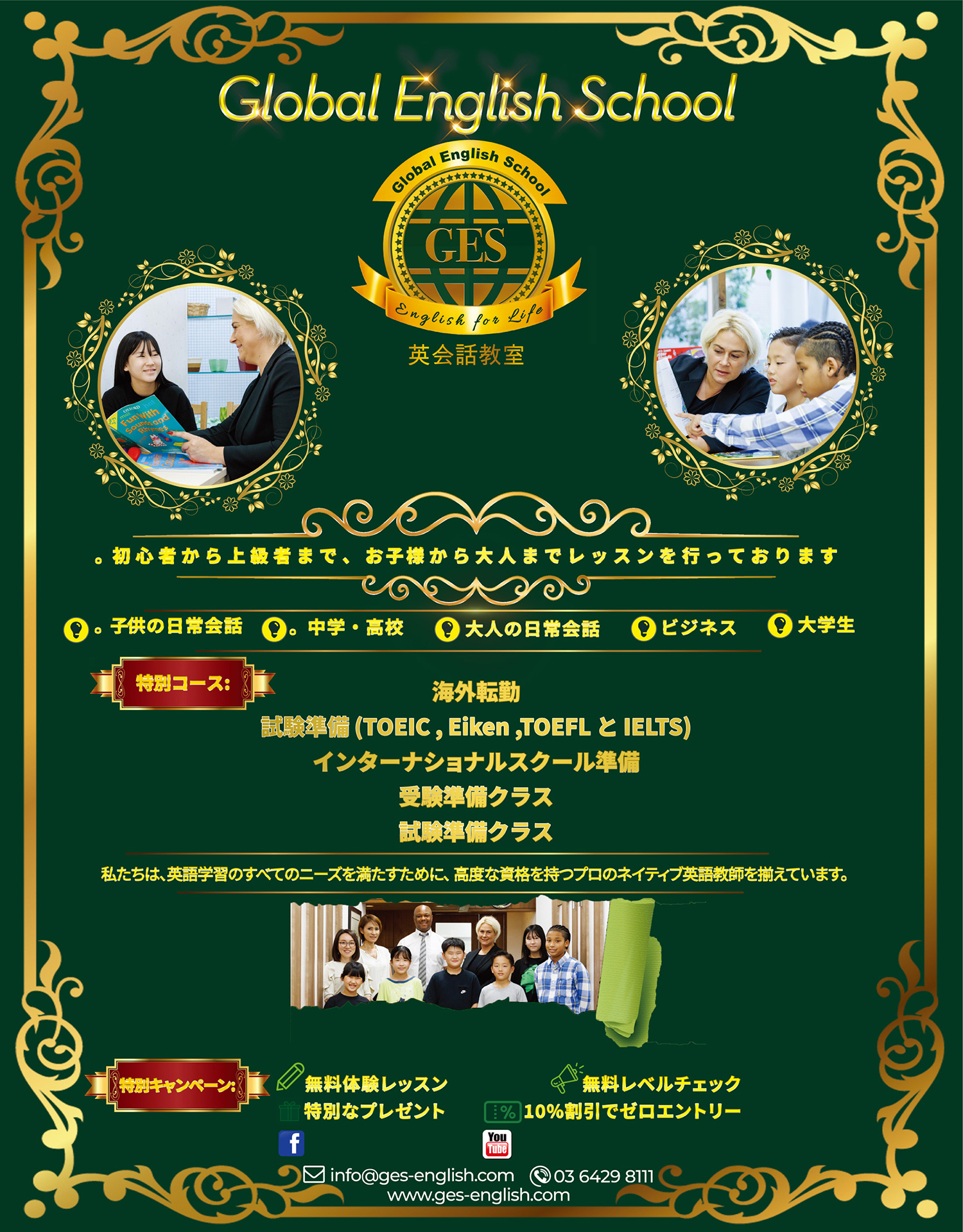 英会話教室「グローバル・イングリッシュ・スクール」は、2022年10月、東京都品川区西大井Jタワー西大井イースト1階に開校いたしました。